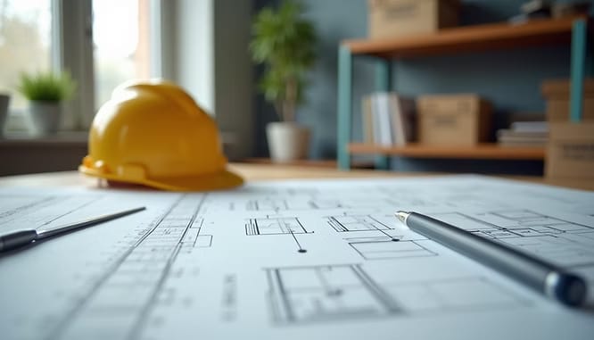 Construction materials and blueprints ready for a commercial renovation project